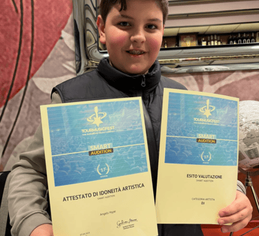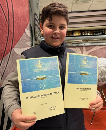La musica è la mia passione e ogni giorno mi dedico con impegno al mio allenamento. Ogni nota, ogni melodia, mi avvicina sempre di più ai miei sogni. Ogni sessione di pratica è un’opportunità per migliorare, per scoprire nuovi suoni e approfondire la mia arte.